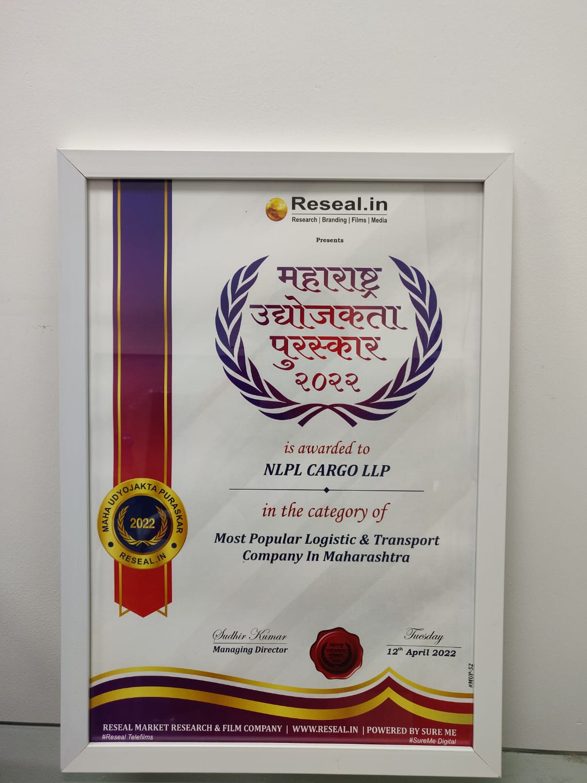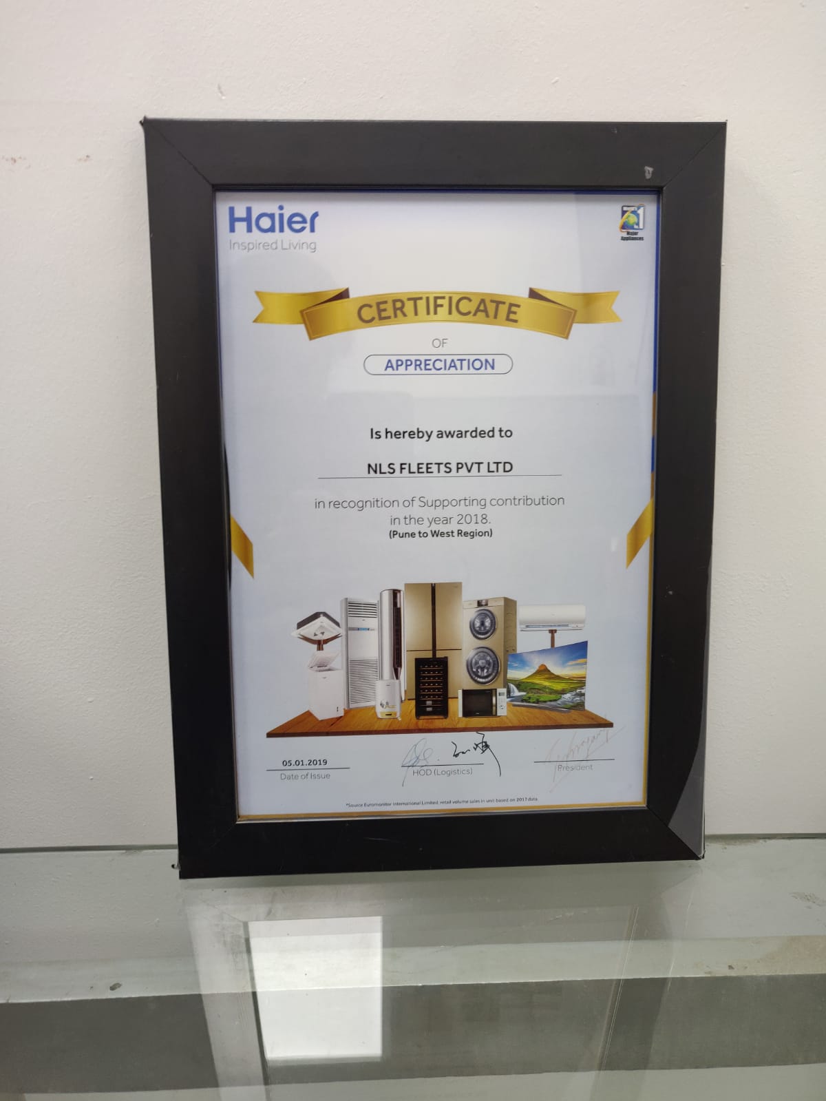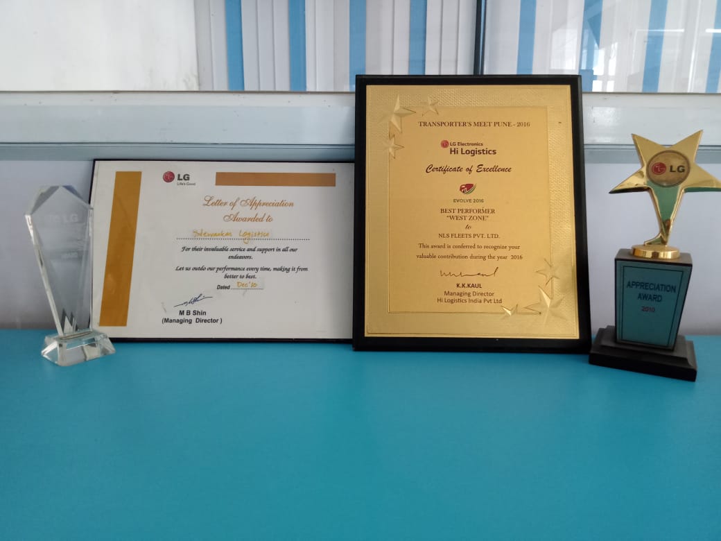 Best transporter Awards achieved from LG Electronics India Pvt Ltd for west Zone.